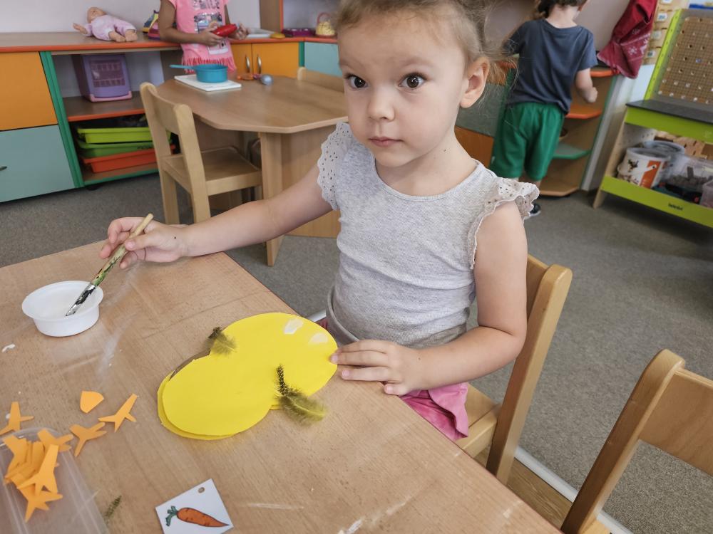 Vyráběli jsme si loutky kuřátek a formou grafomotorického prvku jsme kuřátkům tvořily hnízda. Modelovali jsme a vykreslili spoustu omalovánek kuřátek.