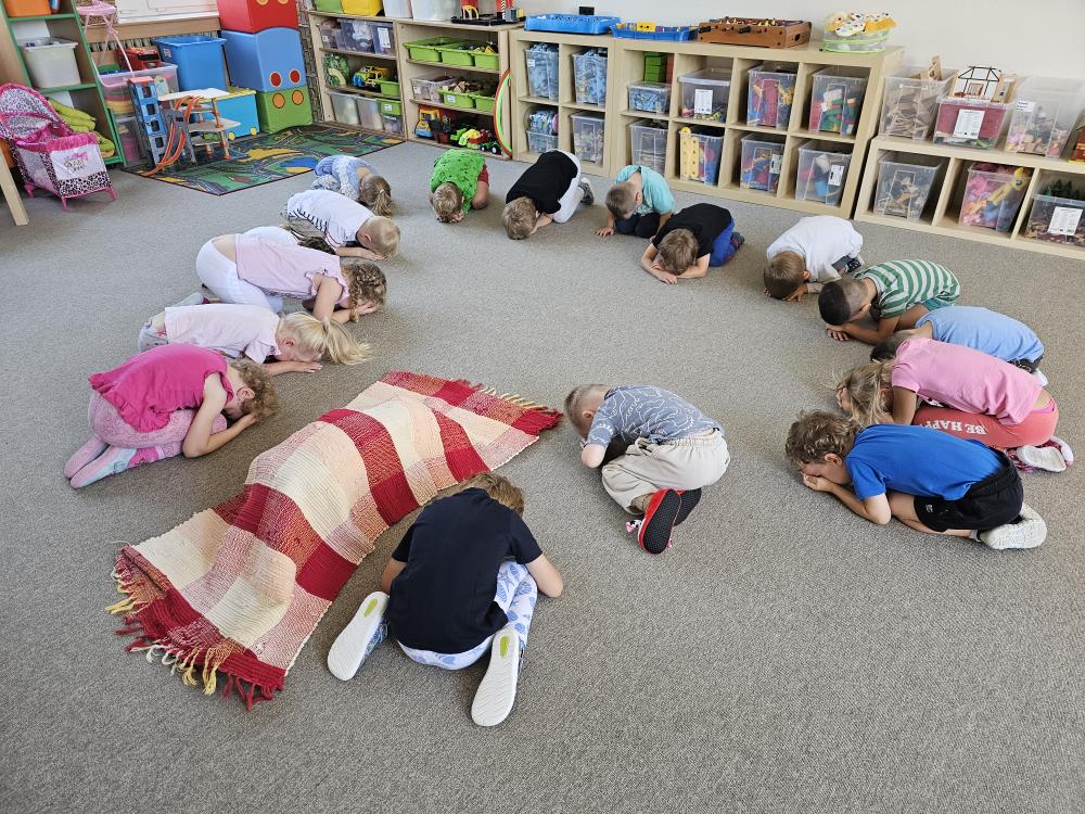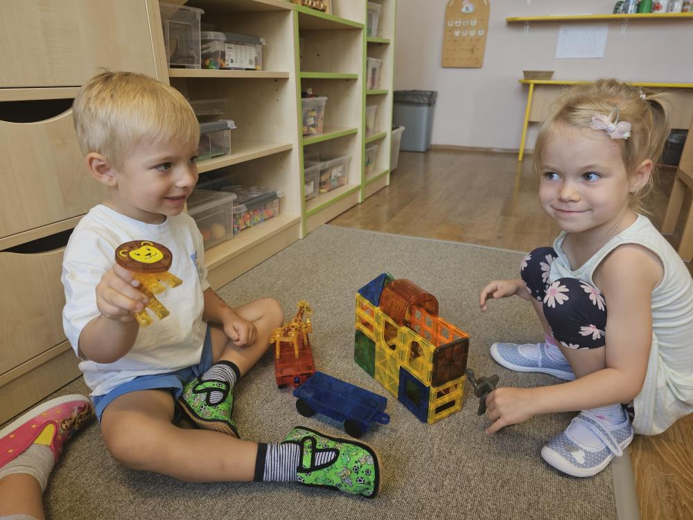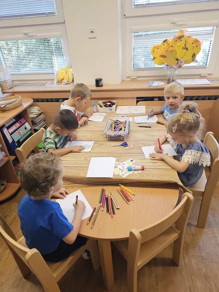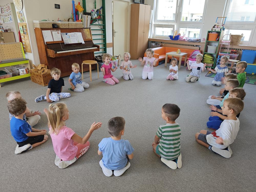První dny v MŠ se nesly v duchu nového poznávání, seznamování, odvahy být bez maminky, a nebo taky návratu za svými kamarády. Hned v prvním týdnu jsme se učili jména svých kamarádů, zejména těch nových. Hráli jsme hry: Jak se jmenuješ, Na zlatý řetěz, Kdo nám chybí – kdo se skrývá pod dekou?Seznamovaly jsme se s druhy pozdravů formou hry – ,,Pozdravte se“, i s rituály naší třídy Kuřátka. Naučily jsme se básničky k rituálnímu pozdravu každého dne: ,, My jsme děti… Kuřátka si říkáme! „