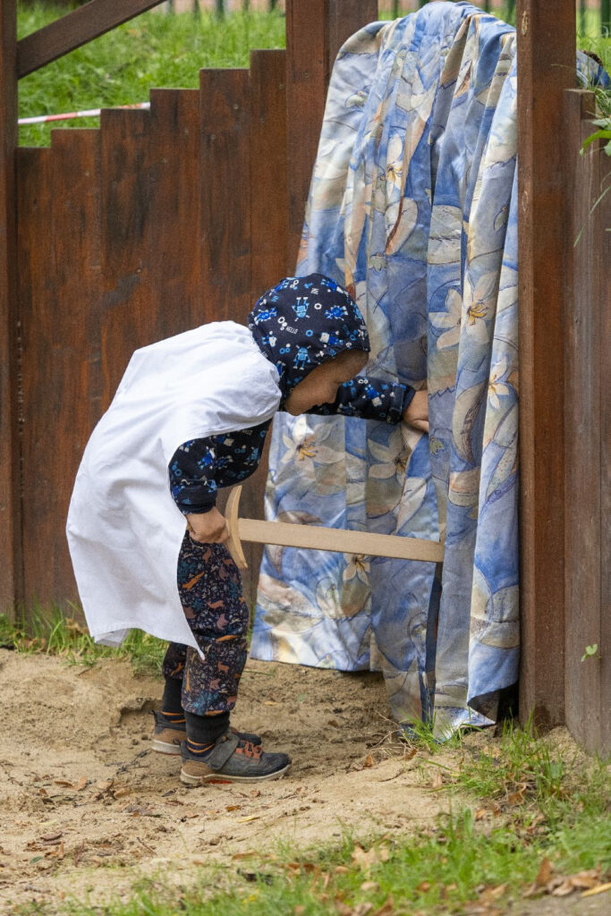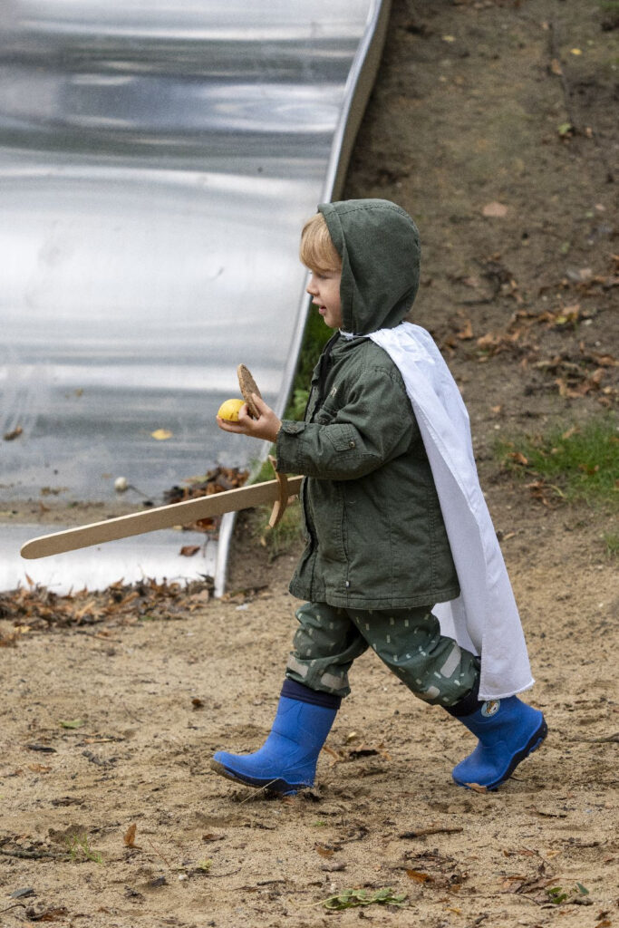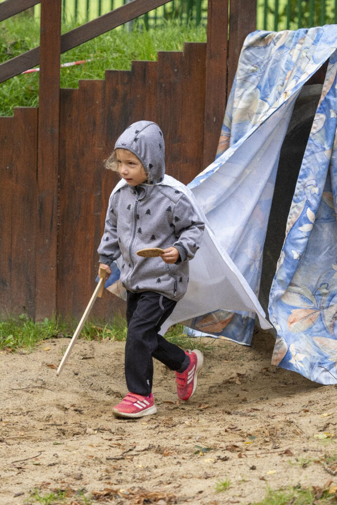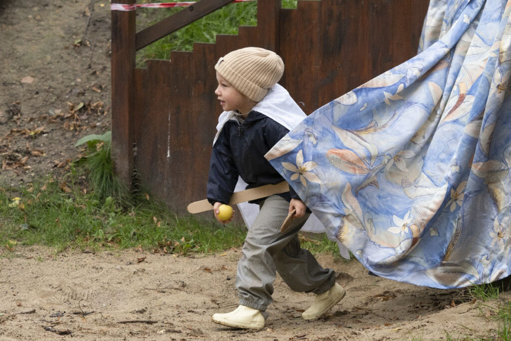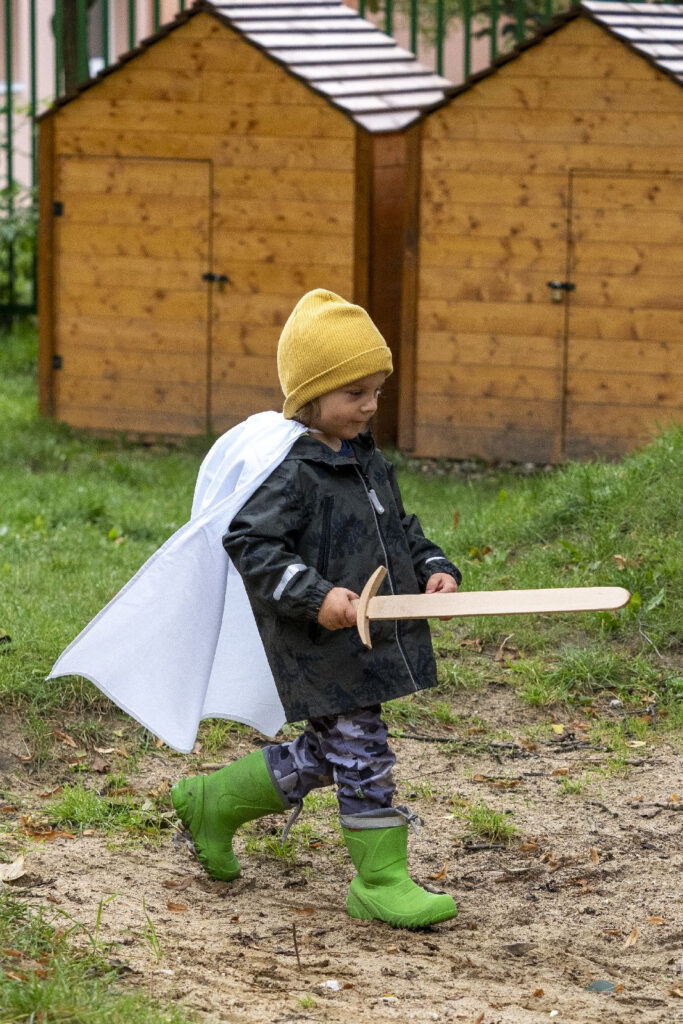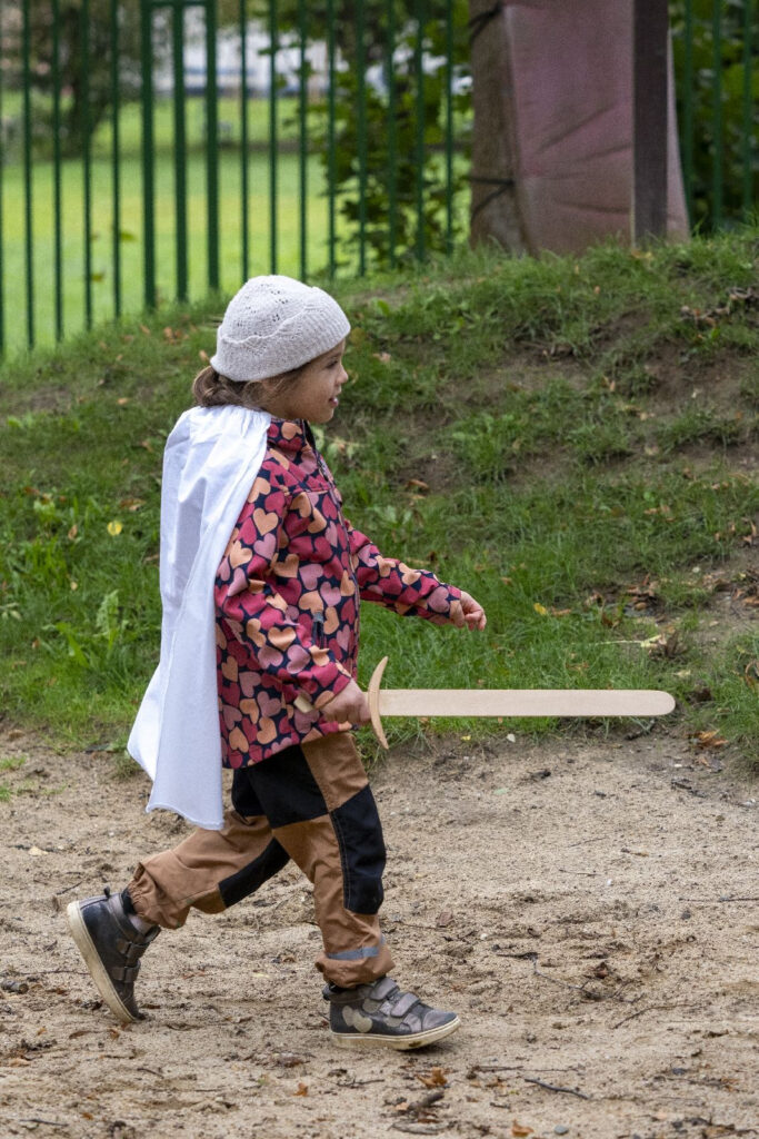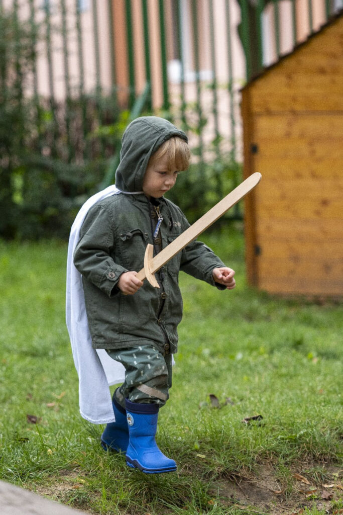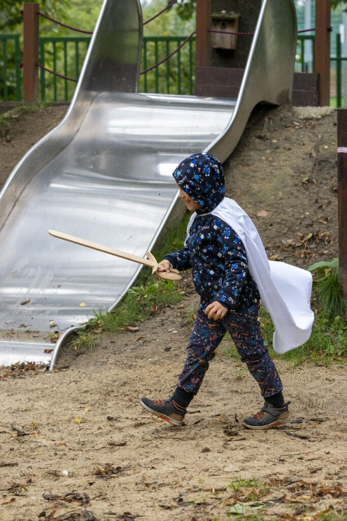 Děti si vyslechly legendu a následně šly s odvahou, mečem, pláštěm, slunečním paprskem a písní do “jeskyně”. V jeskyni našly našly sluněční sušenku v podobě štítu a jablíčko. Bylo potřeba překonat svou nejistotu, obavy z neznáma a prožít radost ze svého úspěchu a odvahy
