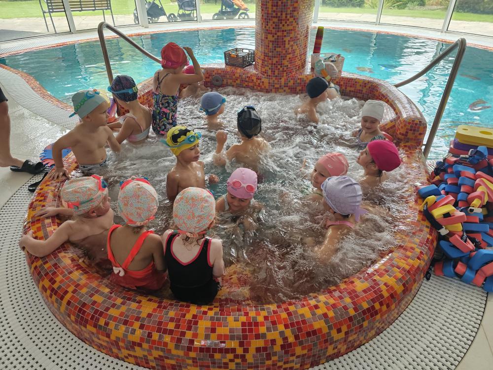 Každoročně nabízí naše MATEŘSKÁ ŠKOLA VĚTRNÁ dětem nadstandartní aktivitu ve formě plaveckého kurzu. Spolupracujeme s firmou ve Vřesině s oficiálním názvem Plavecký klub Crabík. Je to krásné, čisté a teplé zázemí pro děti, s bazénem přiměřené velikosti, který začínající plaváčky nijak neděsí. Součástí zázemí je i bublinkový bazének určený k relaxaci a sauna.