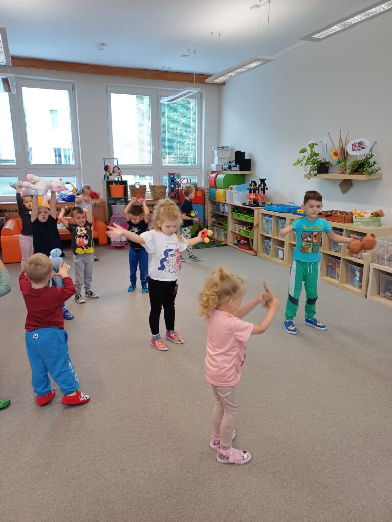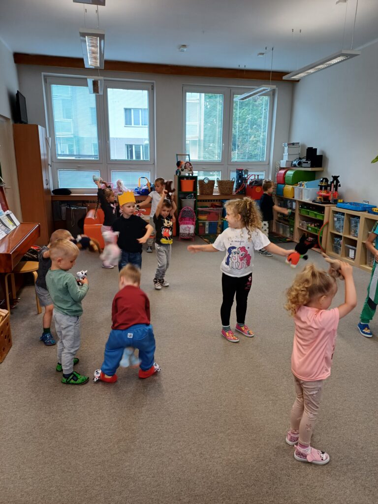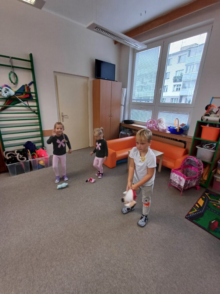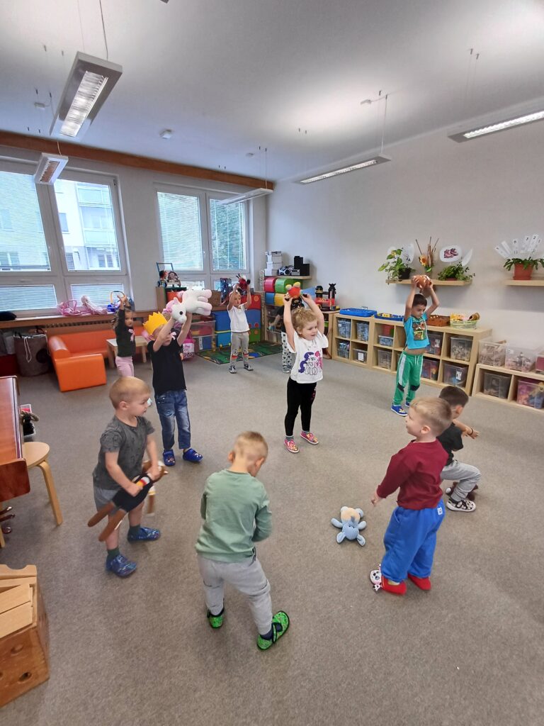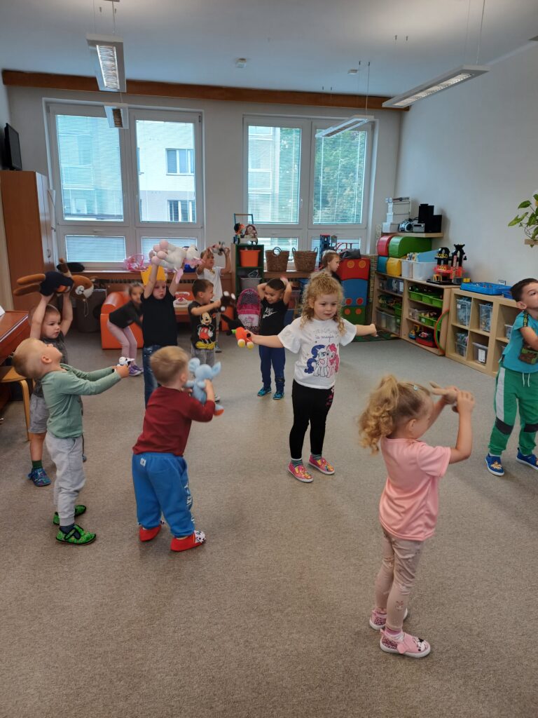 V mateřské škole cvičíme i s plyšovými zvířátky. Na cvičení si děti mohly vybrat plyšovou hračku ze třídy, nebo si výjimečně mohlo každé dítě přinést vlastního plyšáčka. Jeden den v týdnu jsme si určili tvz. HRACÍ DEN, kdy si děti mohly pohrát i s hračkou, kterou si děti přinesly z domova nebo každý mohl hračku přinést ukázat kamarádovi.