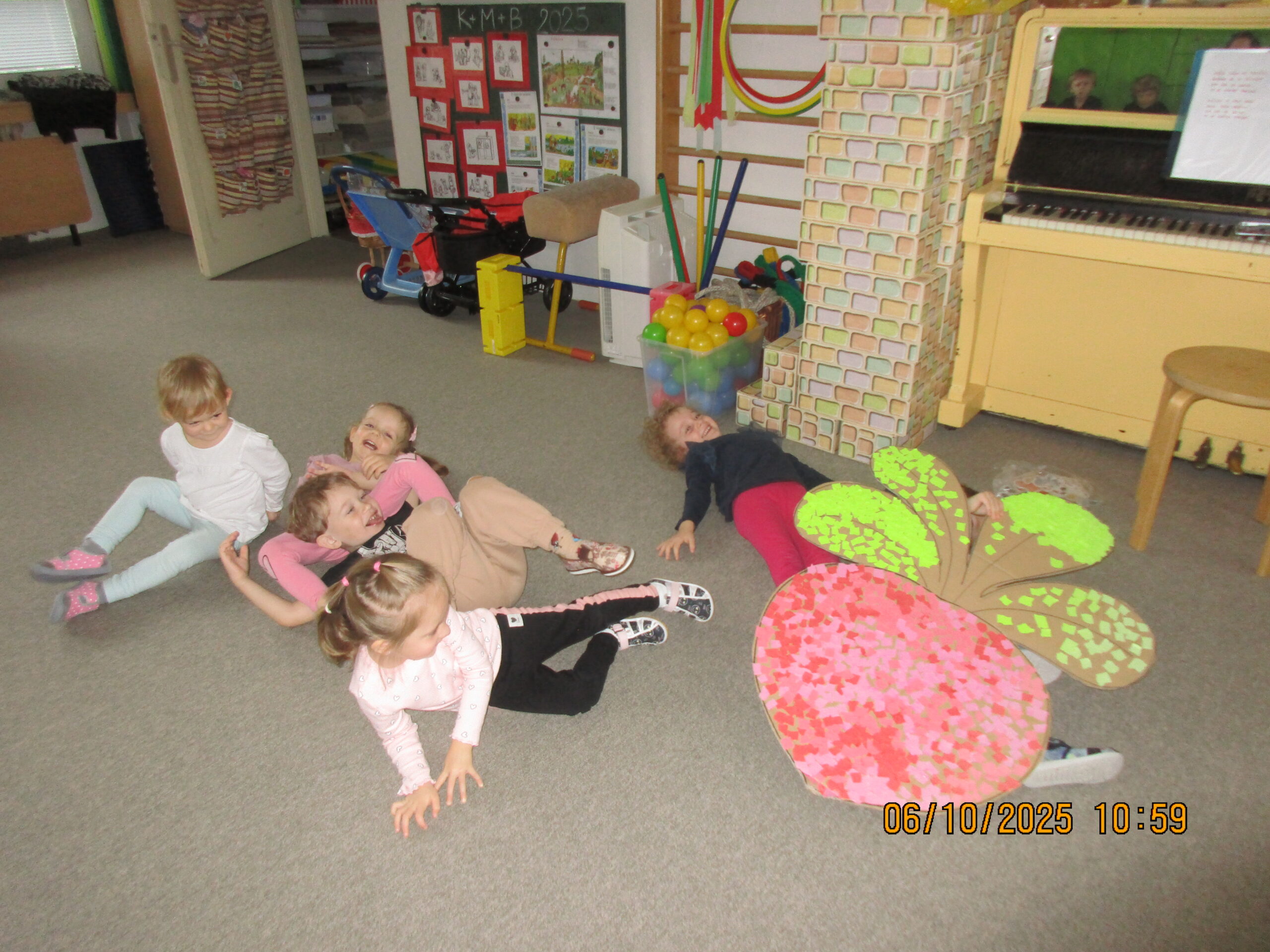 V týdnu, kdy se seznamujeme s úrodou na zahrádkách jsme si zdramatizovali známou pohádku, při které se děti učily užívat přímou řeč, pojmy před, za, mezi, první, poslední.