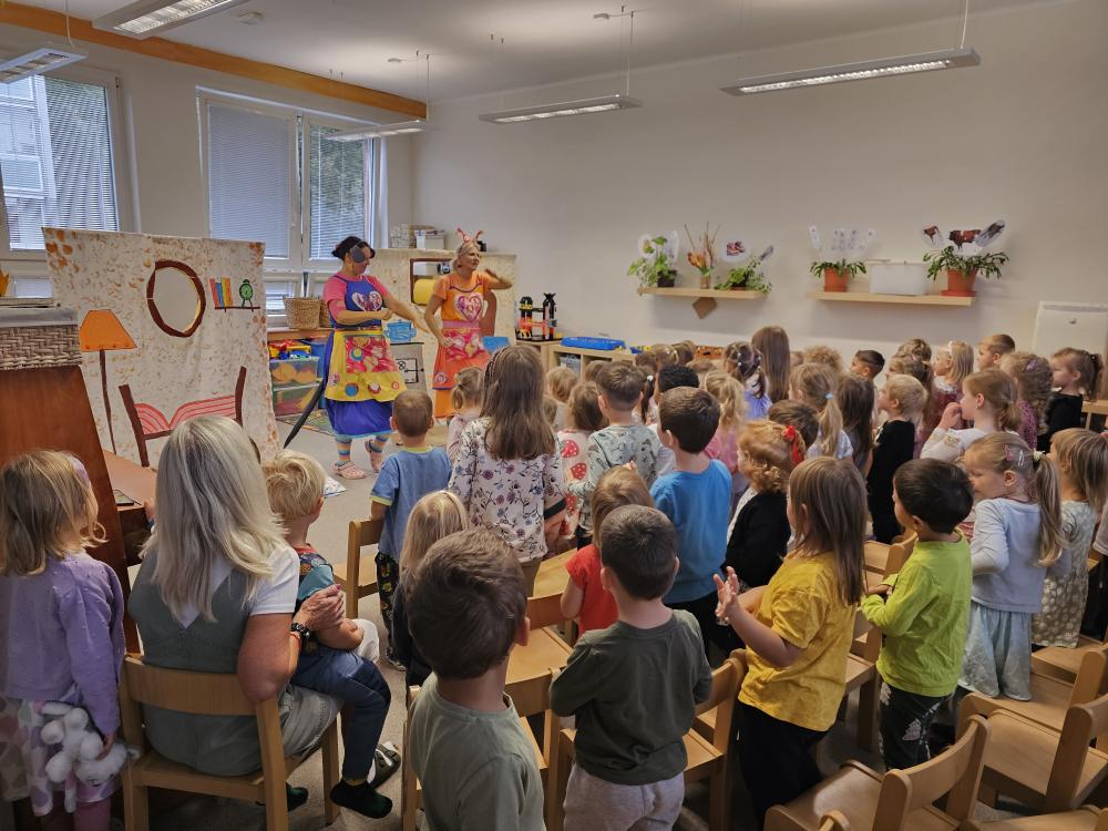 V září, v adaptačním čase, za námi do mateřské školy přijela divadelní společnost ENTENTÝKY. Představení s hereckými postavami, veselou veverkou Terkou a myškou Klárkou bylo plné humoru, naplněné známými a neznámými scénkami, které evokovaly děti o mezilidských vztazích.