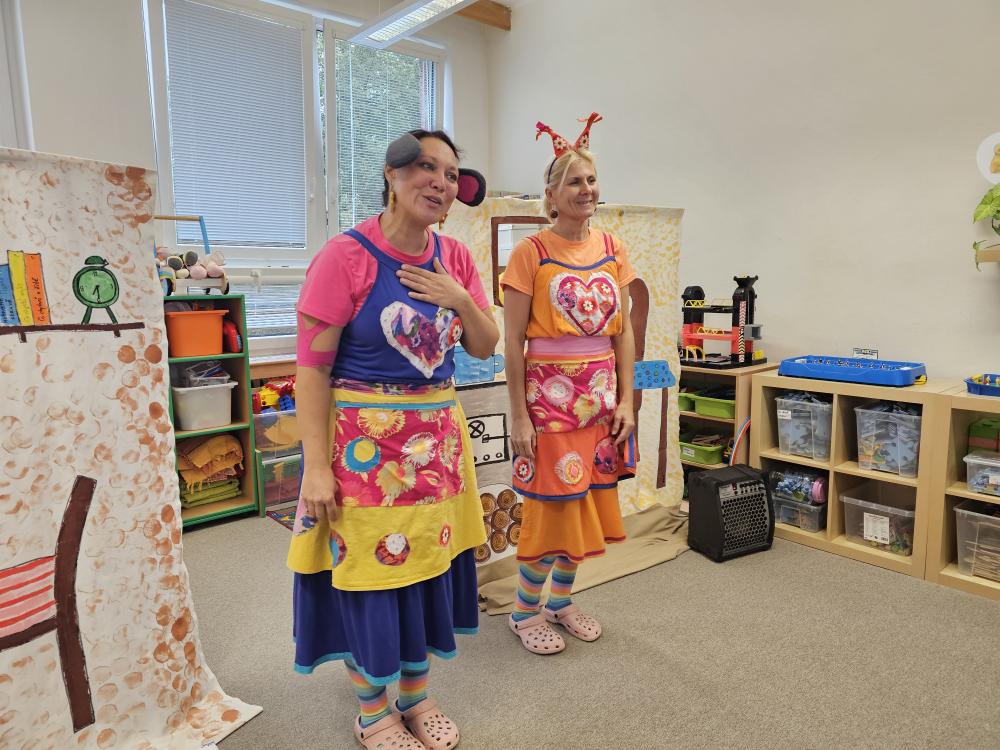 Herecká dvojice s důvtipem sehrála různé scénáře situací, které se dějí v kolektivu dětí, a které vycházejí z různého dění během dne v MŠ. Příběhy byly ryze autorské a velmi zábavné. Upozornily a seznámily děti se společenskými pravidly a s třídními pravidly, které zajišťují dětem bezpečnost, pohodlí a jistotu.