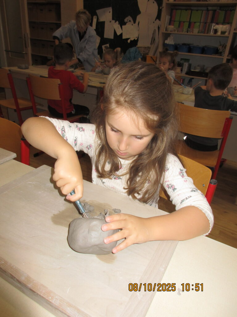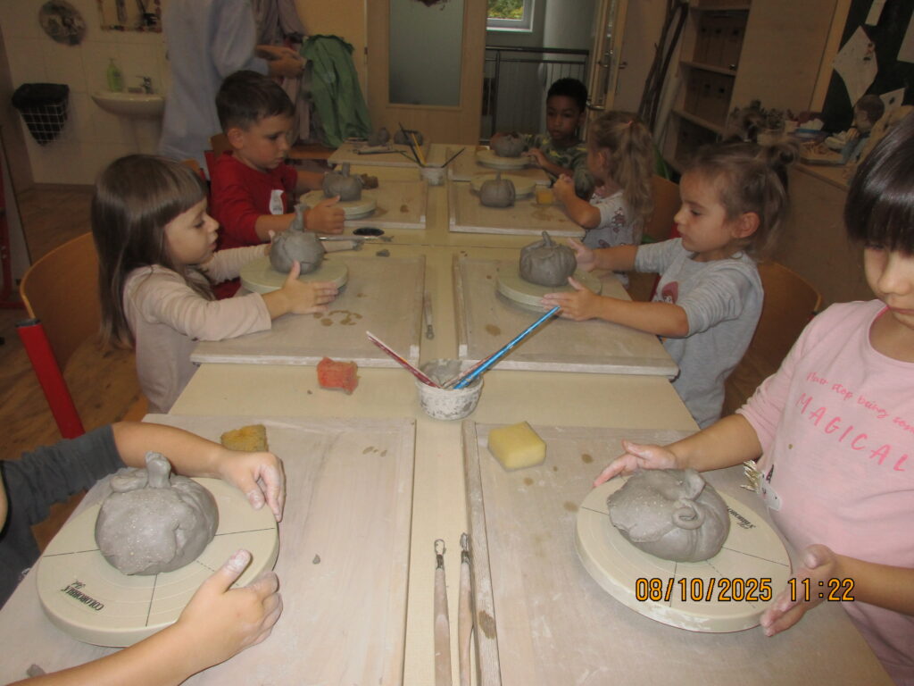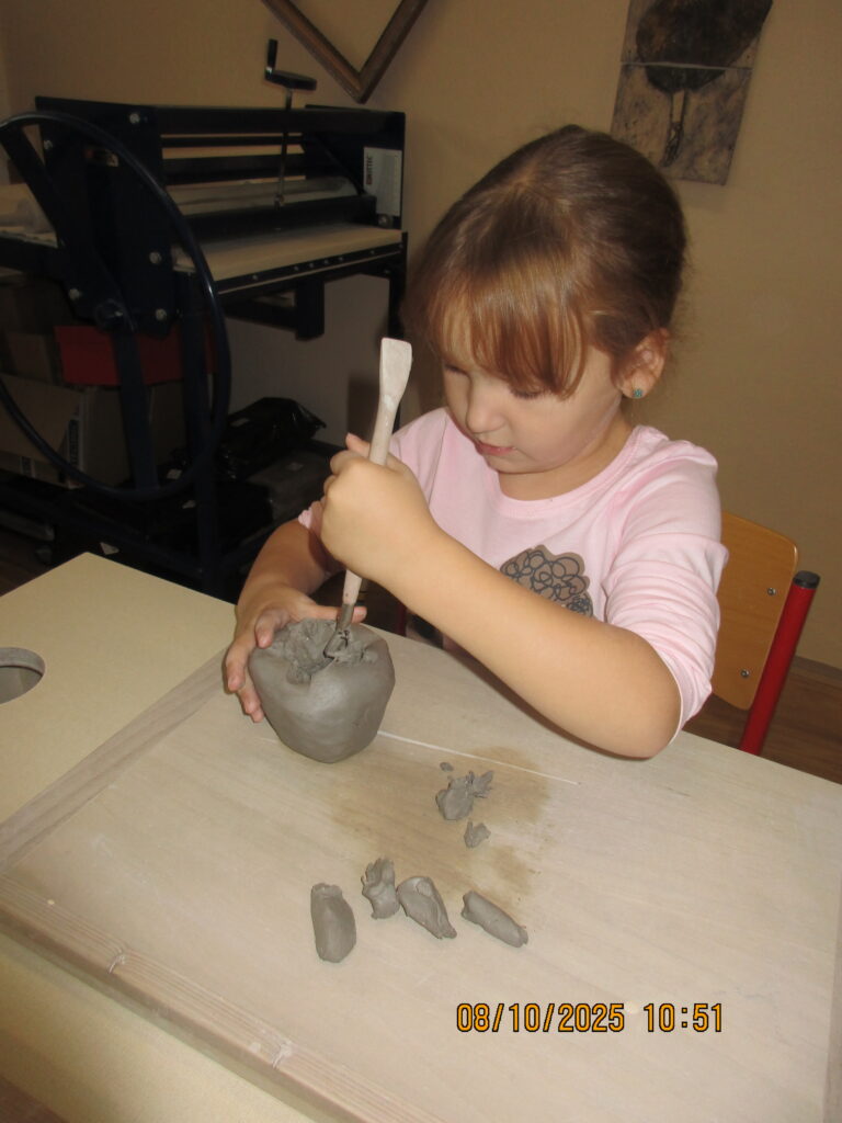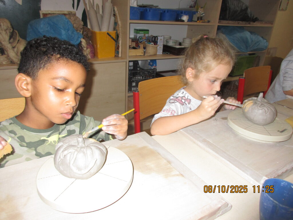 V tomto školním roce jsme navštívili kroužek keramiky v Korunce, pro mnohé to bylo něco nového, byly tam poprvé. Seznámily se s prostředím, milou paní keramičkou a materiálem-modelovací hlínou. Děti vyráběly dýni a že jim to šlo.