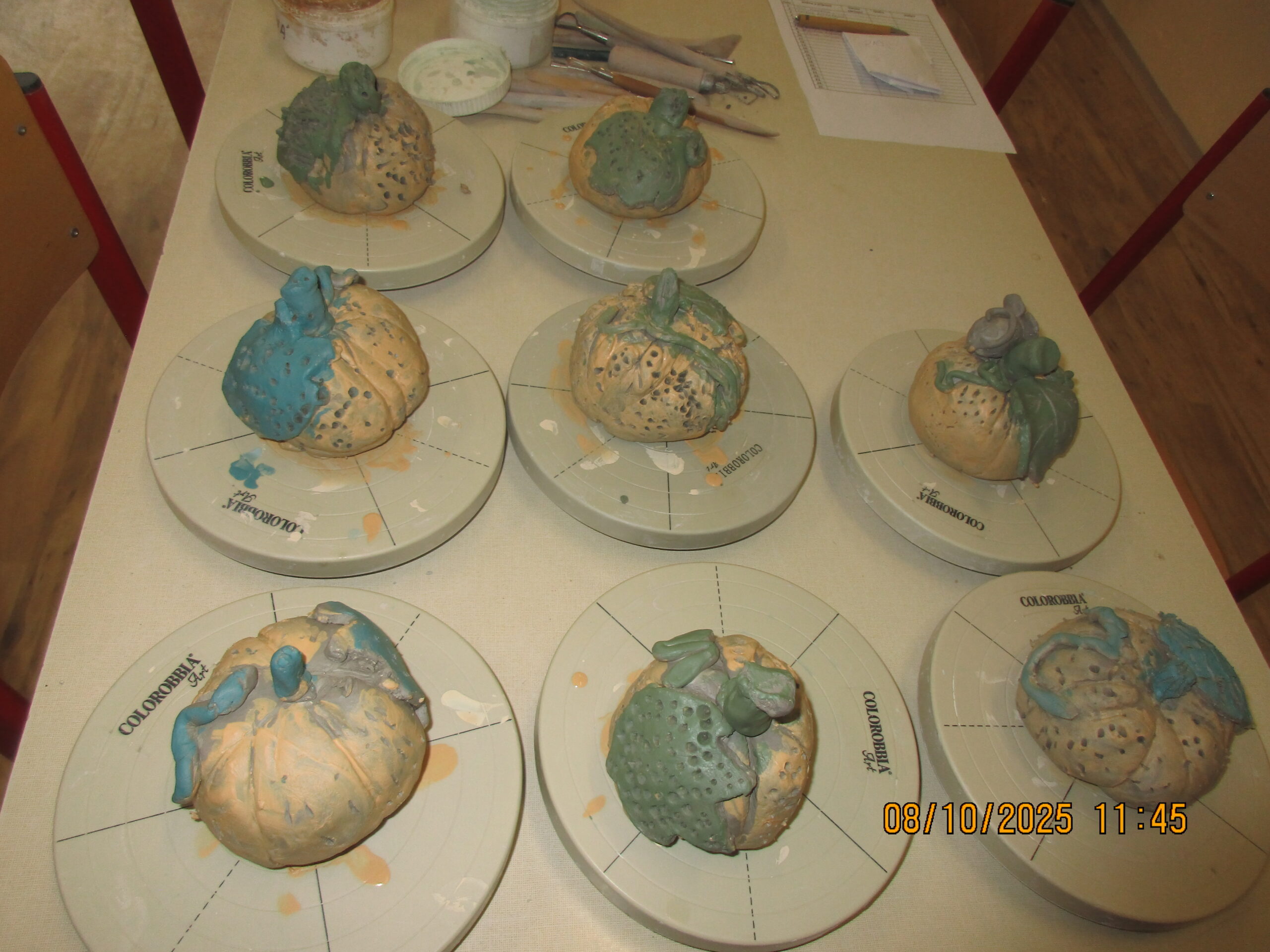 V tomto školním roce jsme navštívili kroužek keramiky v Korunce, pro mnohé to bylo něco nového, byly tam poprvé. Seznámily se s prostředím, milou paní keramičkou a materiálem-modelovací hlínou. Děti vyráběly dýni a že jim to šlo.