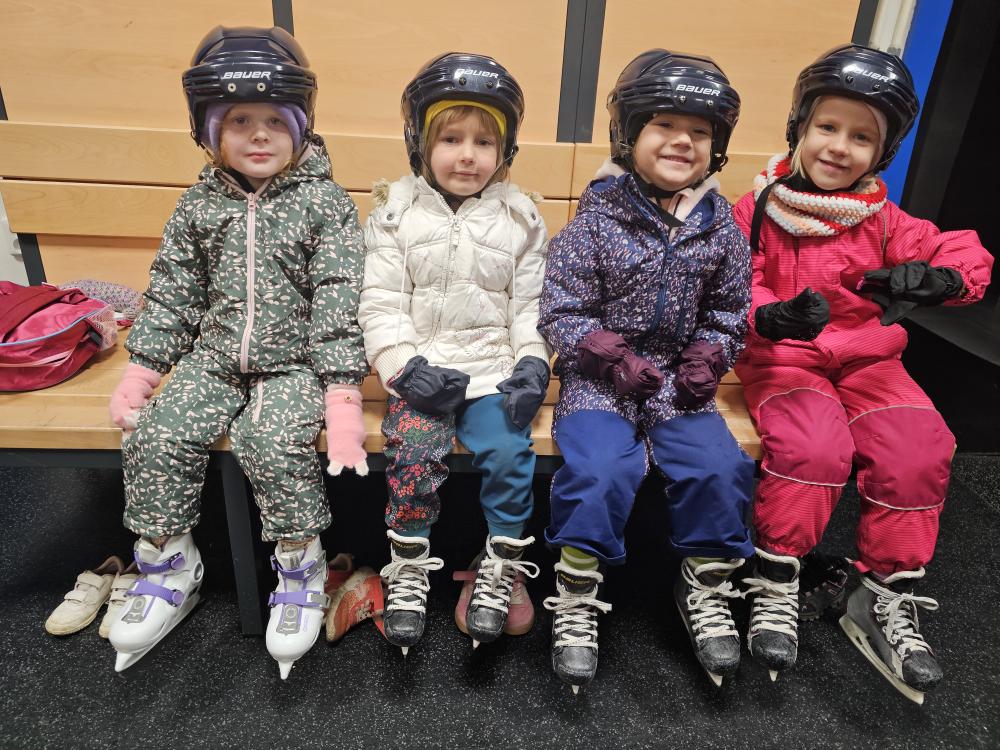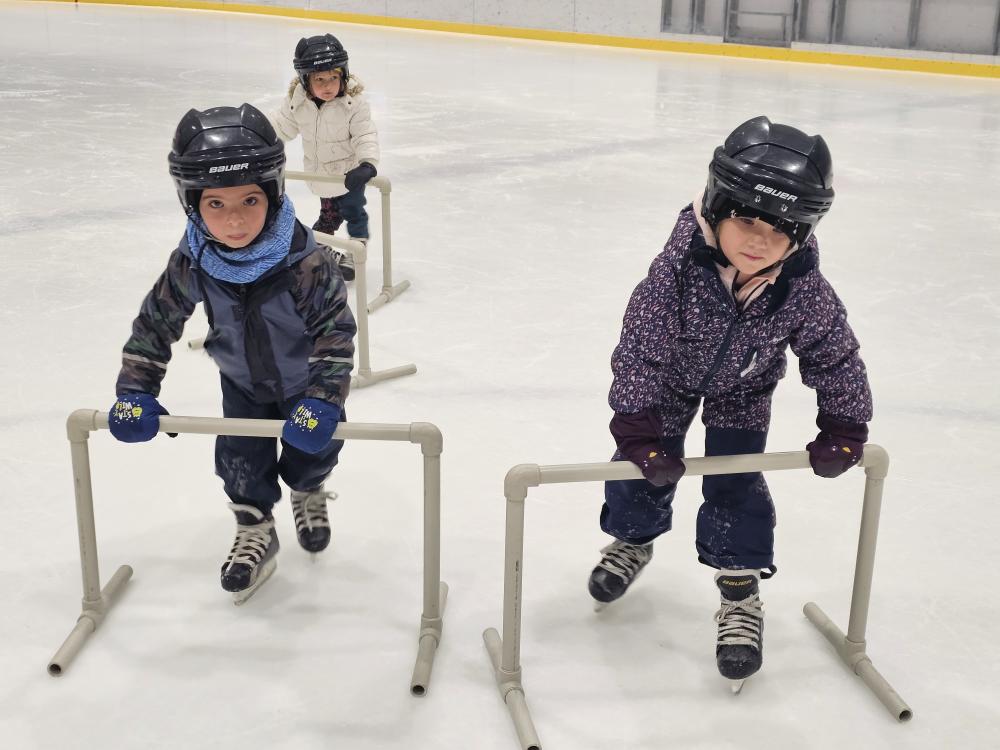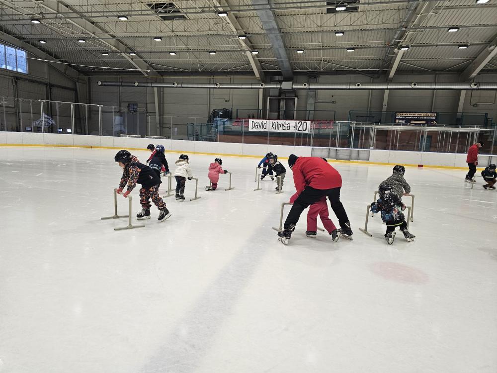 Brusle a helmu děti dostaly zapůjčeny a na ledě s dětmi byli celkem 3 trenéři. Po celý bruslící čas se dětem věnovali a přistupovali k nim individuálně. Je hezké pozorovat, jak se děti s každou lekcí rozvíjejí a dělají pokroky.