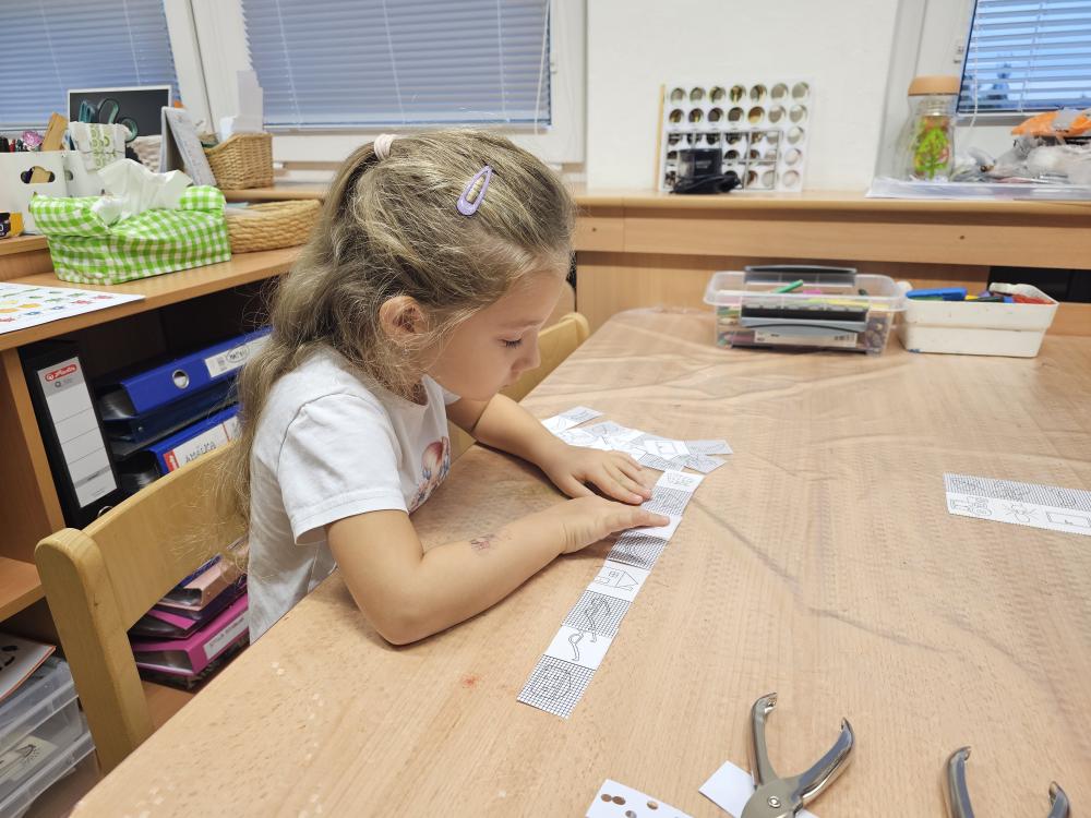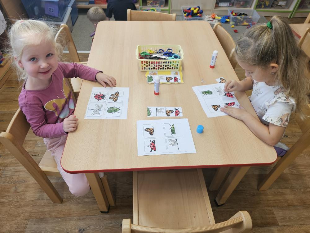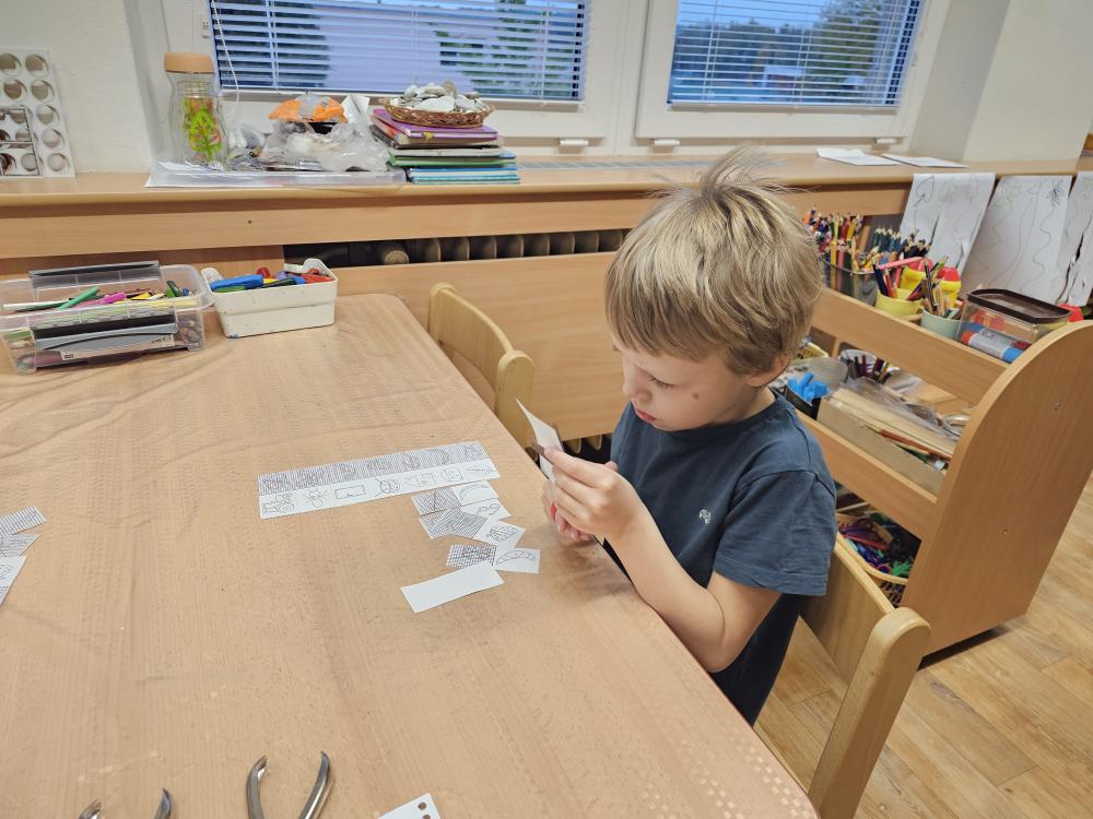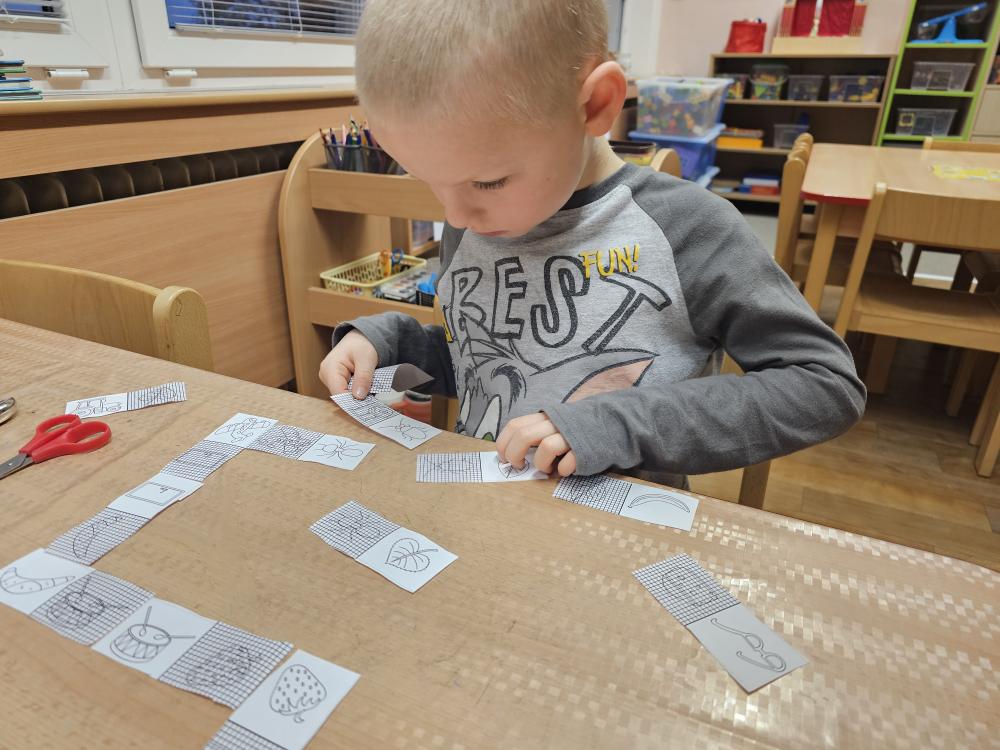 Půlky obrázků nám pomohly uvědomit si, která část ke které patří. Nejprve jsme si je vystřihli a následně dolepily do tabulky. Dařilo se nám a aktivita nás bavila.