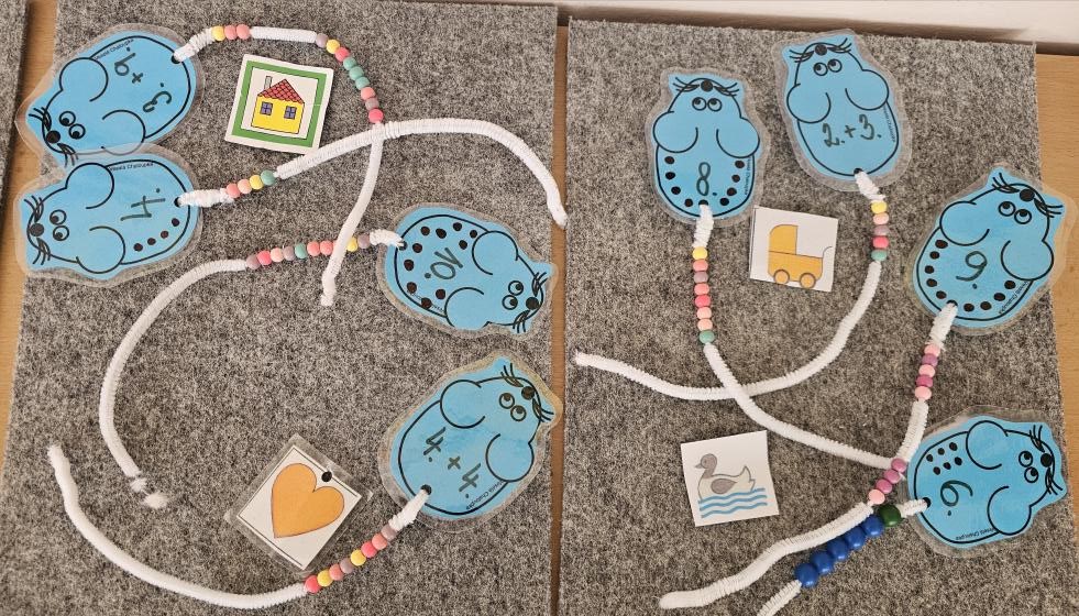 V týdnu Broučkiády a s tématem: Uspávání broučků jsme se věnovali logickému myšlení a počítání. Modrým myškám a kamarádkám broučkům jsme zdobili ocásky barevnými korálky, podle čísla nebo počtu teček, které měla myška uvedené na zádech. Nejen, že jsme si procvičili číslo a postupnost, ale prstíky nelenošily a rozvíjely si jemnou motoriku. Starší děti si procvičily pojmy uber a přidej, taktéž sčítání a někteří zvládli i násobky.
