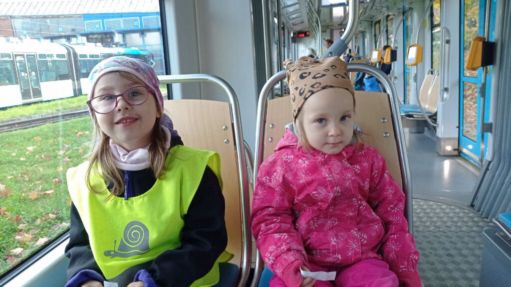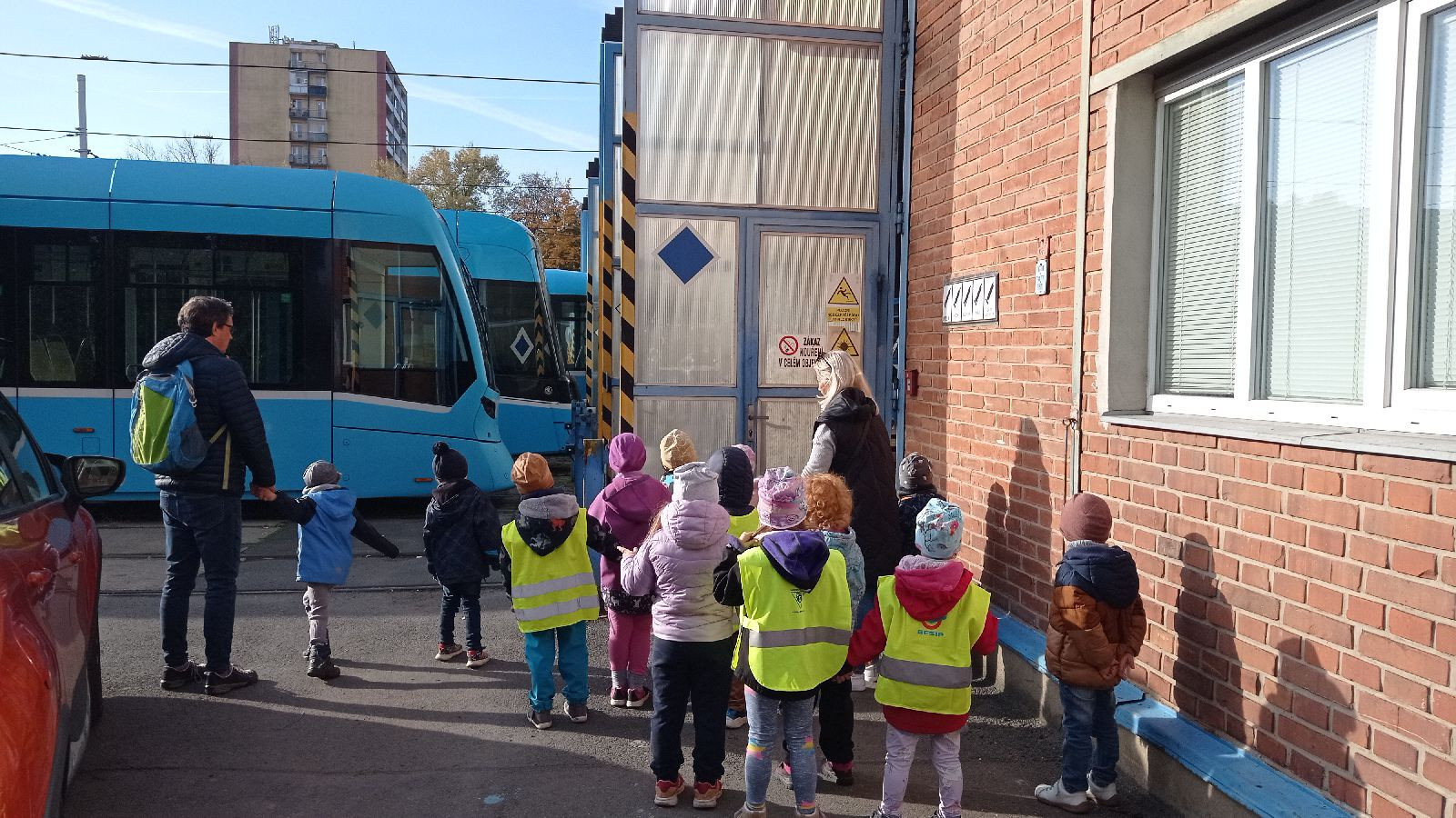V měsíci říjnu jsme navštívili s dětmi Vozovnu tramvají v Ostravě Porubě. Děti byly seznámeny s prostředím vozovny DPO v Ostravě – Porubě, prohlédly si venkovní areál. Vyzkoušely si řízení sekacího traktůrku. Podívaly se do dílny na měnění kol tramvají, nahlédly i pod tramvaj. Viděly servis tramvají i elektro dílnu, kde si cvakly starou jízdenku pro následnou jízdu v tramvaji. Prošly se nad tramvajemi, kde mohly vidět odkryté střechy tramvají, které obsahovaly elektroniku a vše potřebné pro chod tramvaje. Navštívily pískovnu a seznámily se s tím, na co tramvaj potřebuje písek a kolik ho zužitkuje za měsíc. Nahlédly na různé technické stroje, které pomáhají údržbě tramvají (mazání elektrických drátů, čistění kolejí, technický vůz určený na pomoc k dopravním nehodám). Projely se opravdovou tramvají na zkušebním okruhu. Nakonec si vyzkoušely, jak se sedí v křesle řidiče tramvaje a jak se zvoní.