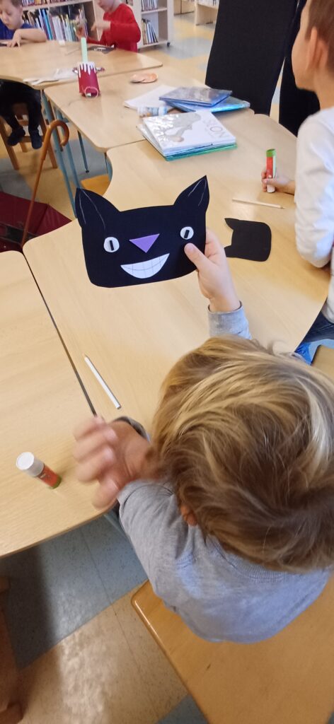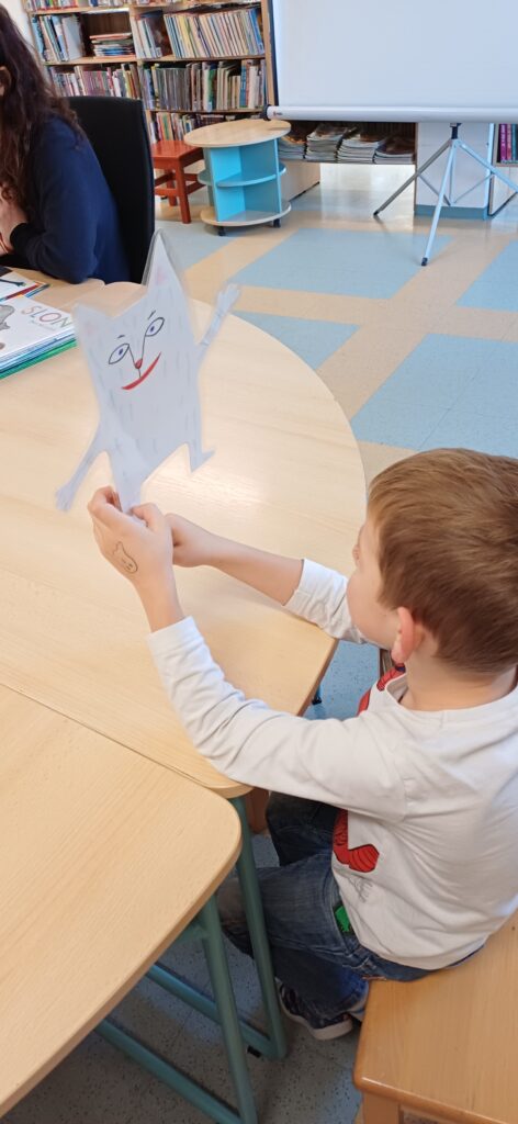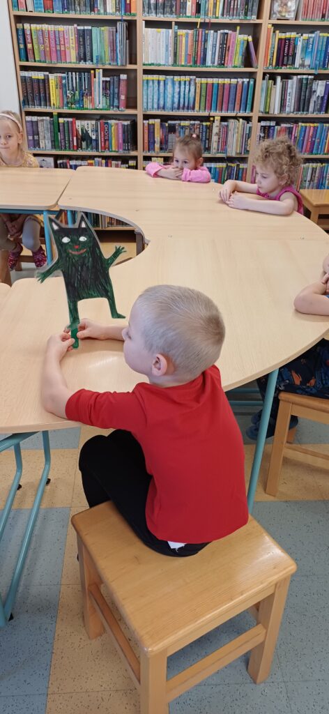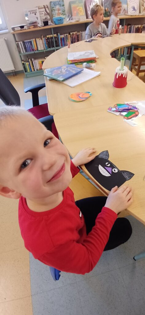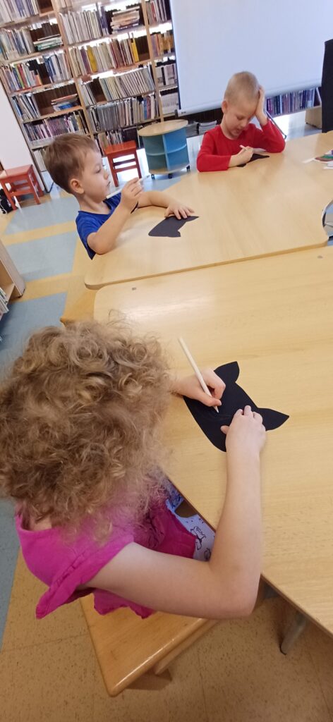 Nakonec si děti vyrobily z kousku výkresu hlavu kočičky a prohlédli si knihy v knihovně. Bylo to moc pěkně prožité dopoledne!