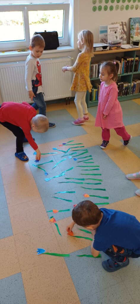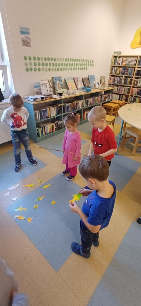 Děti si během četby příběhu vyzkoušely mnoho aktivit. Nejvíce se dětem líbilo chytání rybiček na udici nebo si děti vyzkoušely poskládat zahrádku ze stonků a květů z papíru.