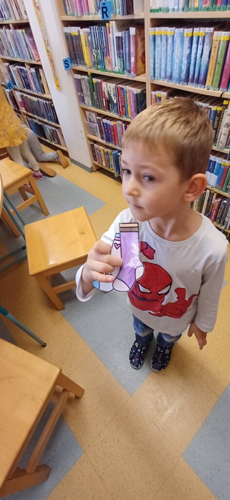 Před závěrem příběhu měly děti za úkol najít kocourkovi ponožky vytvořené z papíru, které byly ukryté někde mezi knihami.