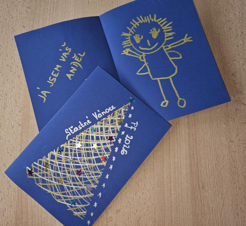 Kapřík Pepík čekal, až mu děti namalují zelený kabátek a přilepí zlaté šupinky. Tvořili jsme vánoční přání a zakreslili dovnitř andílka.