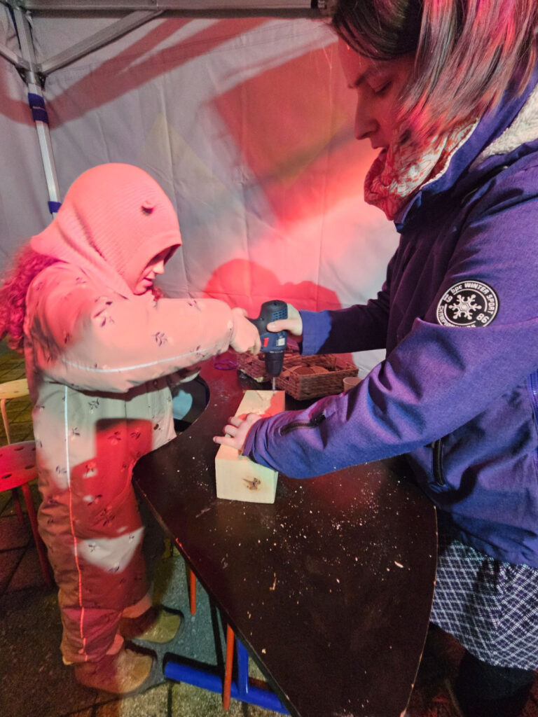 Po pěveckém vystoupení následovalo vyrábění ve workshop koutku, který na hodinu otevřeli pedagogové naší MŠ. Ti, kteří nás navštívili si mohli udělat dřevěné ozdoby a zakusit vrtání, také umotat andílka z ovčí vlny. Celou akci jsme si společně s dětmi užili a těšíme se na další výzvy.
