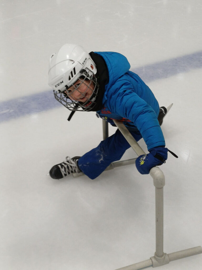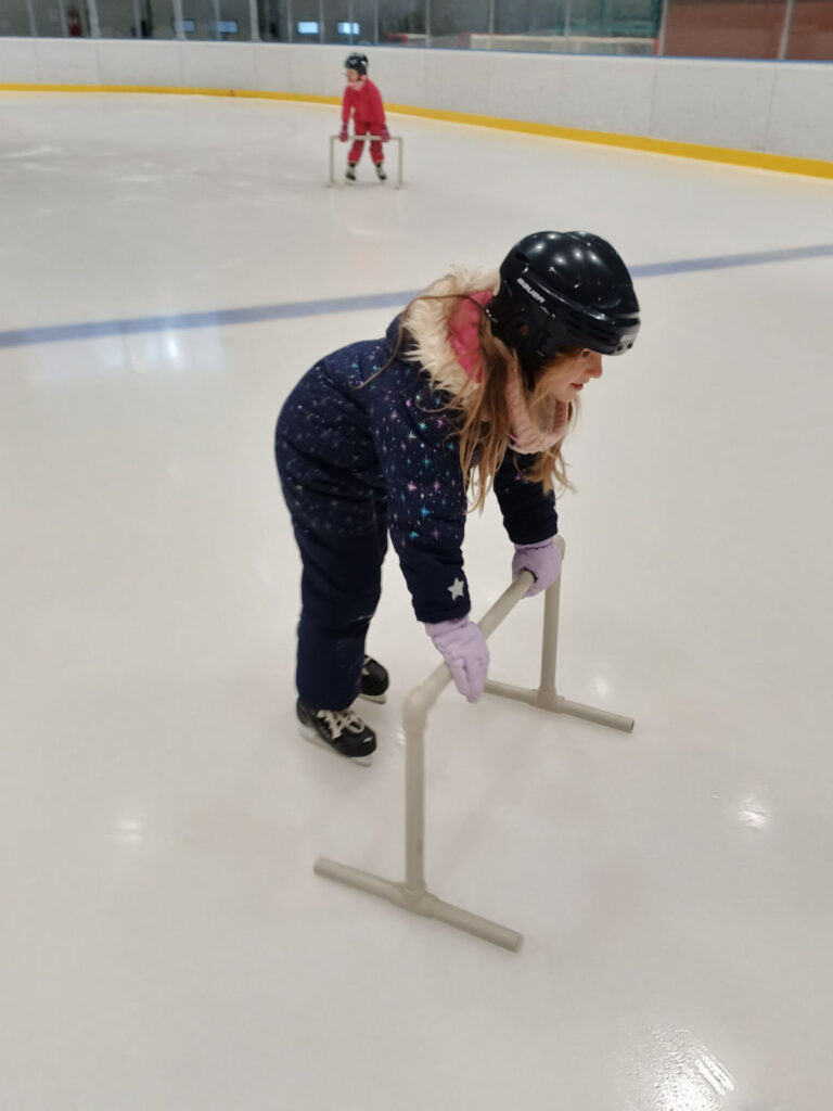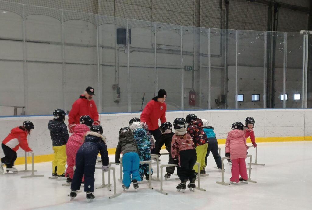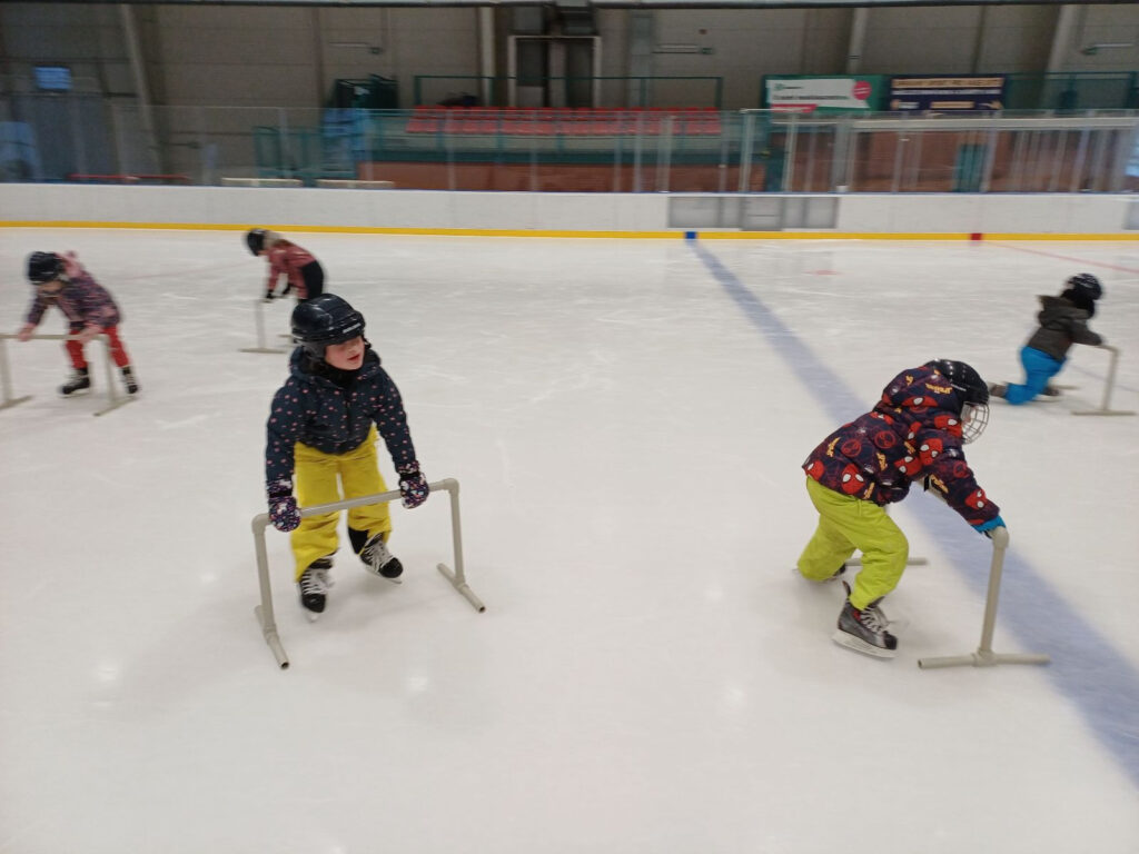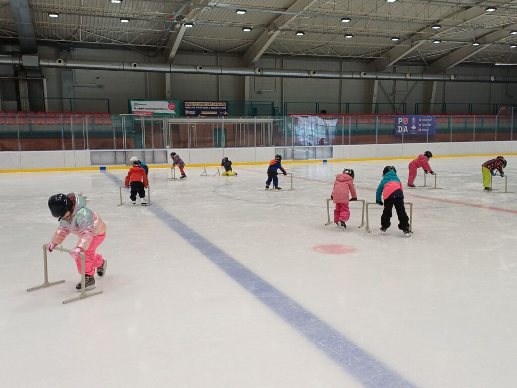 Děti se učily bruslit úplně od základů, nejprve se přidržují „hrazdiček“ na ledě, poté se učí přenášet rovnováhu z nohy na nohu.
