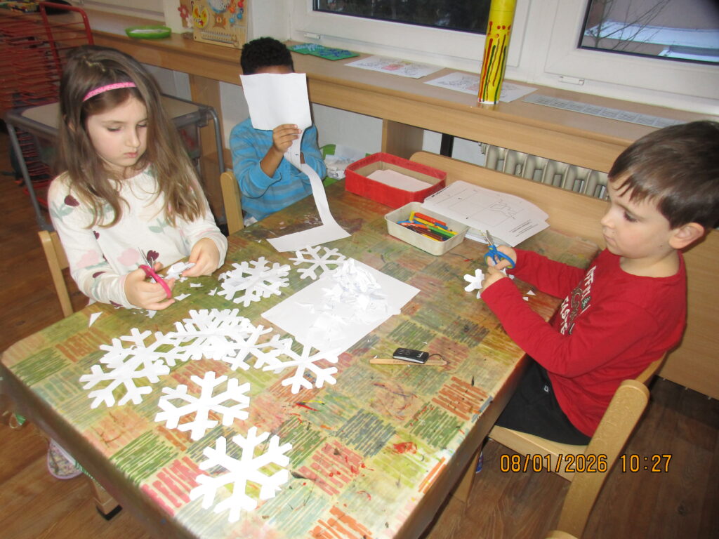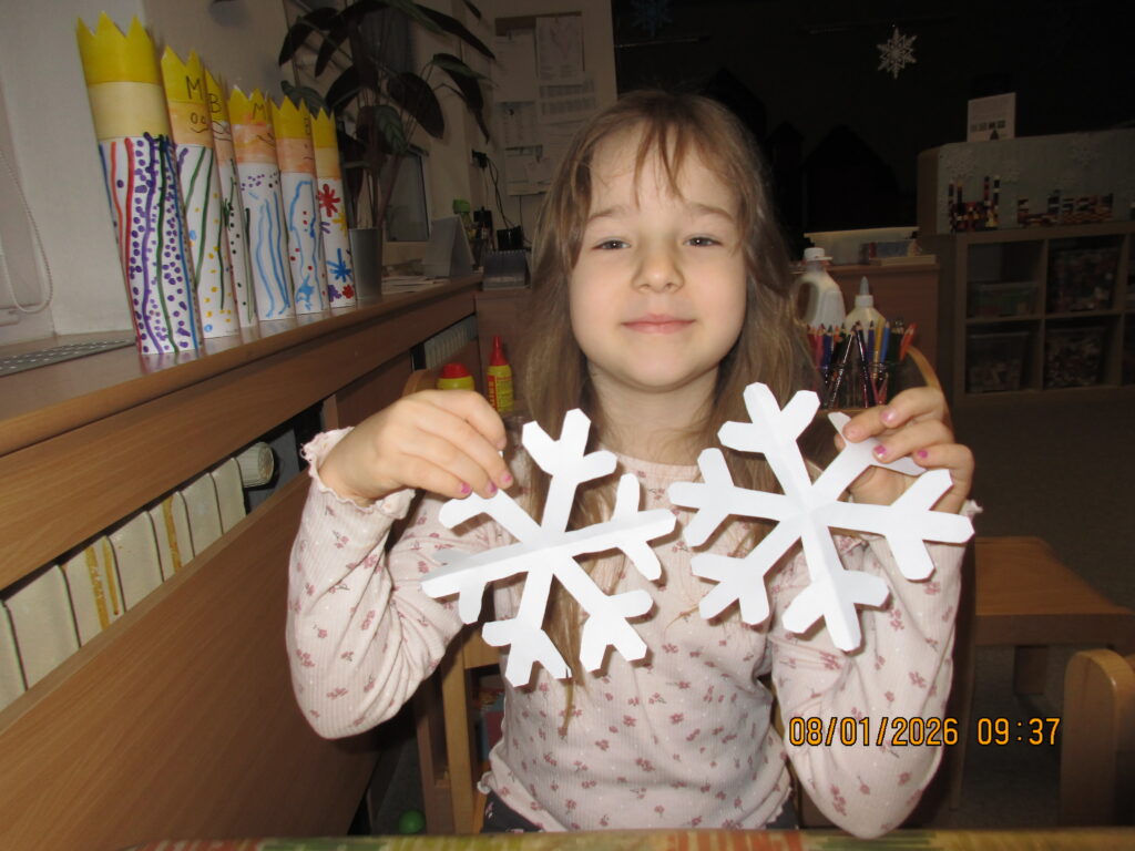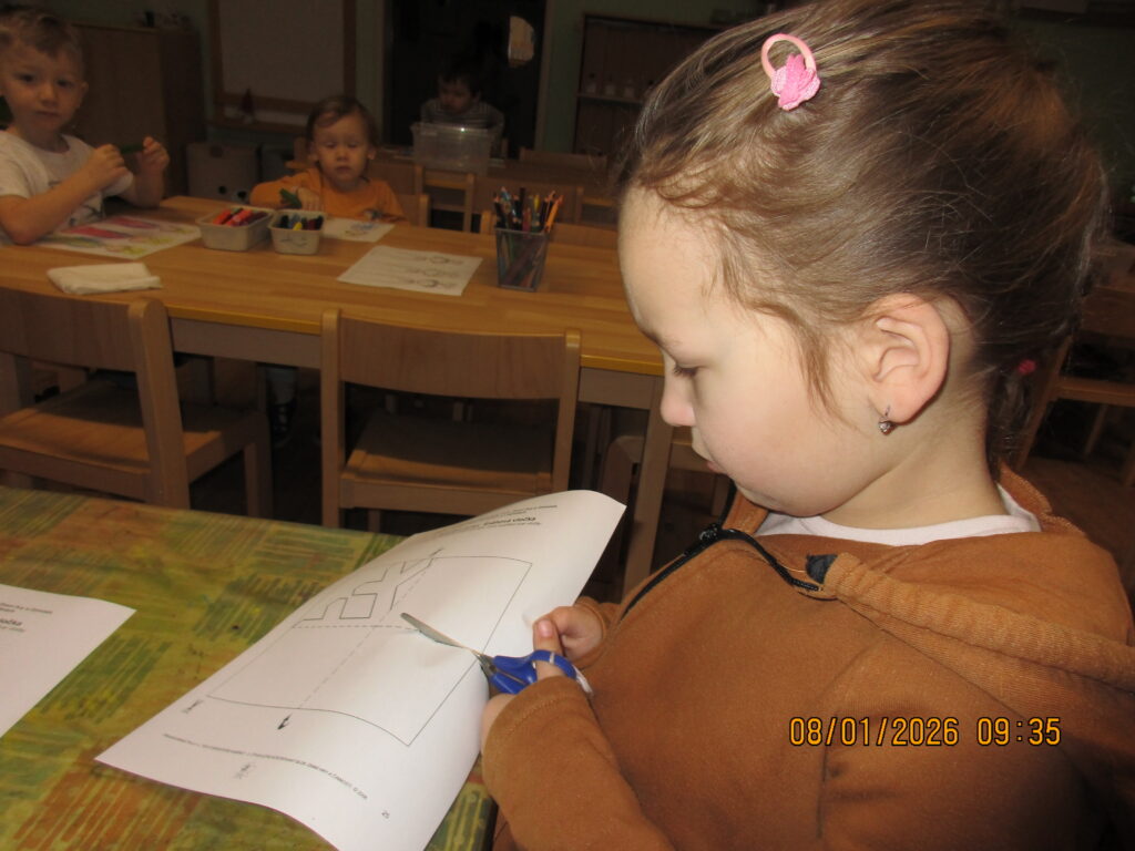 Tímto týdnem jsme ukončili vávoční období, připomněli si poslechem četby z knihy Vánoční příběh příchod Tří králů. Rozvíjeli jsme jemnou a hrubou motoriku, sluchové vnímání, kooperaci mezi dětmi,grafomotoriku, zdokonalovaly stříhání po linii, msnipulaci s předměty, zrakové vnímání.