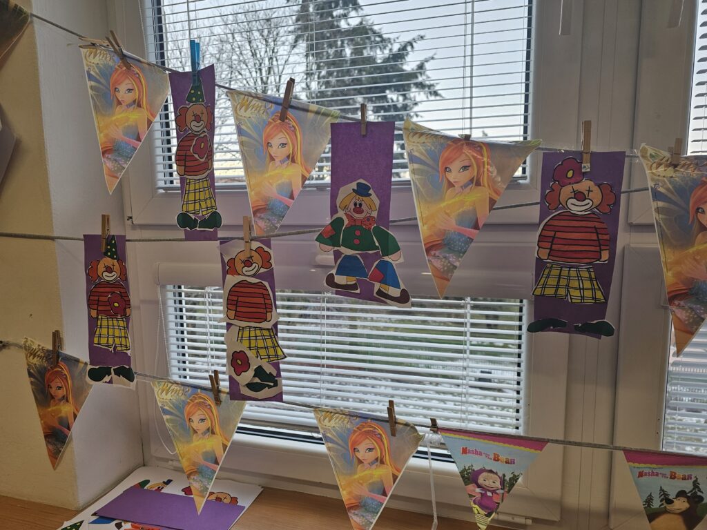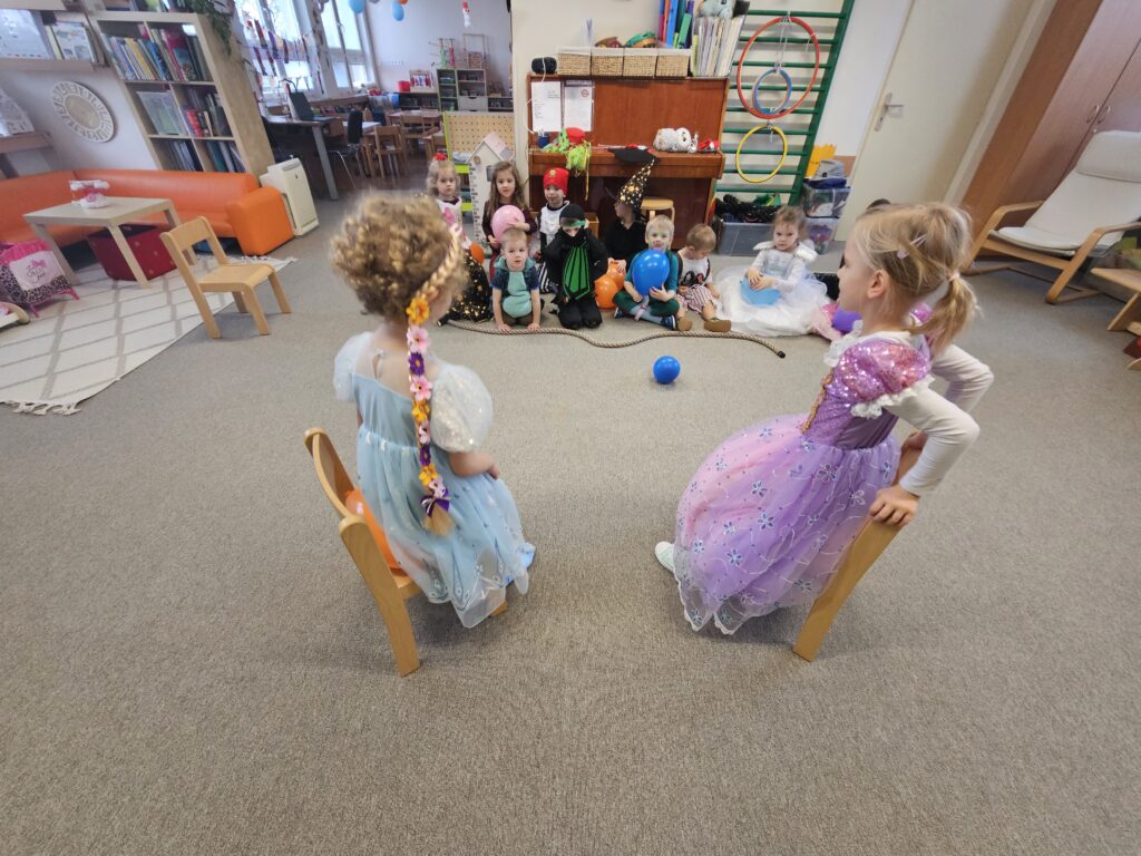 Nejprve se každá maska představila a děti v kroužku ji slovně zasazovaly do správné pohádky. Karnevalové masky si zahrály různé aktivity, které rozvíjely jejich obratnost a zábavu, třídily rozstříhané obrázky karnevalových postav, nalepovaly si klauny z jednotlivých dílů, vytvářely medaile, tančily s balónky a na závěr byla zkouška odvahy a hlavně zábavy – rozsednout balónek na židli nebo na zemi.
