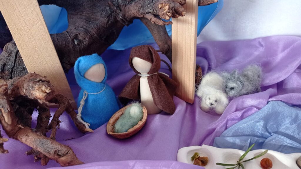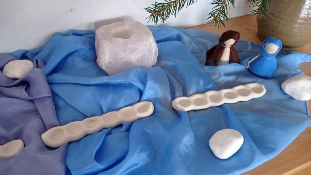 Kdo kdy navštívil naši třídu, již zná Roční stoleček. Je to místo, které odráží uměleckým pohledem a ztvárněním období, které s dětmi zrovna prožíváme. V období Adventu nás zaměstnalo téma adventní cesty Josefa, Marie a oslíka do města Betléma.