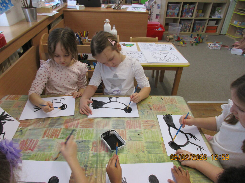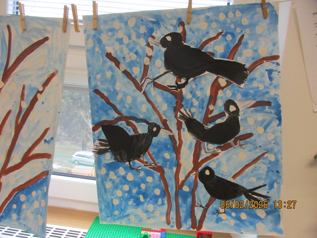 Přiletěla vrána, sedla do trní… 6. 2. 2026 Děti se seznamovaly s druhy ptáčků, jak se o ně staráme v zimě, co smí a co ne.