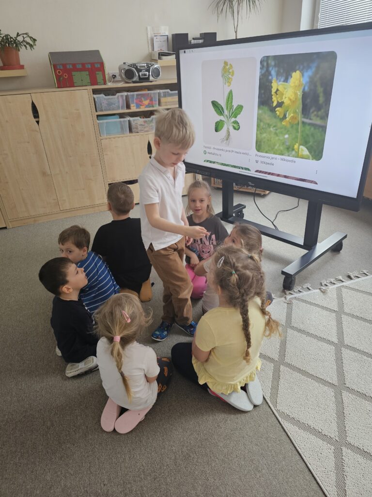 Na zahrádce si procvičili pohyb slalomem a mezi překážkami, seznamovaly se s názvy jarních květin.