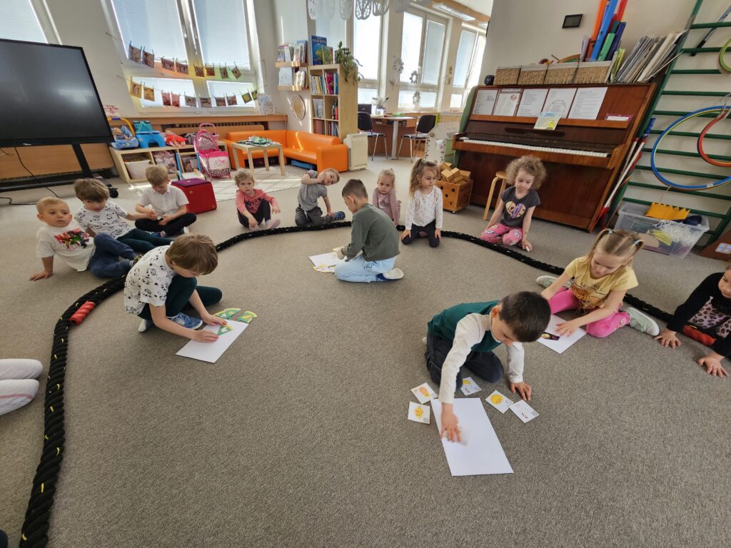 Celý týden nás provázela veršovaná pohádka od Fr. Hrubína Kuřátko a obilí, pohádka O kohoutkovi a slepičce a rytmizační zpěvohra o kuřátku: Ťuky ťuky ťukalo.