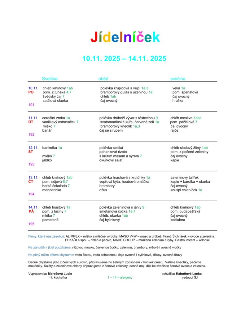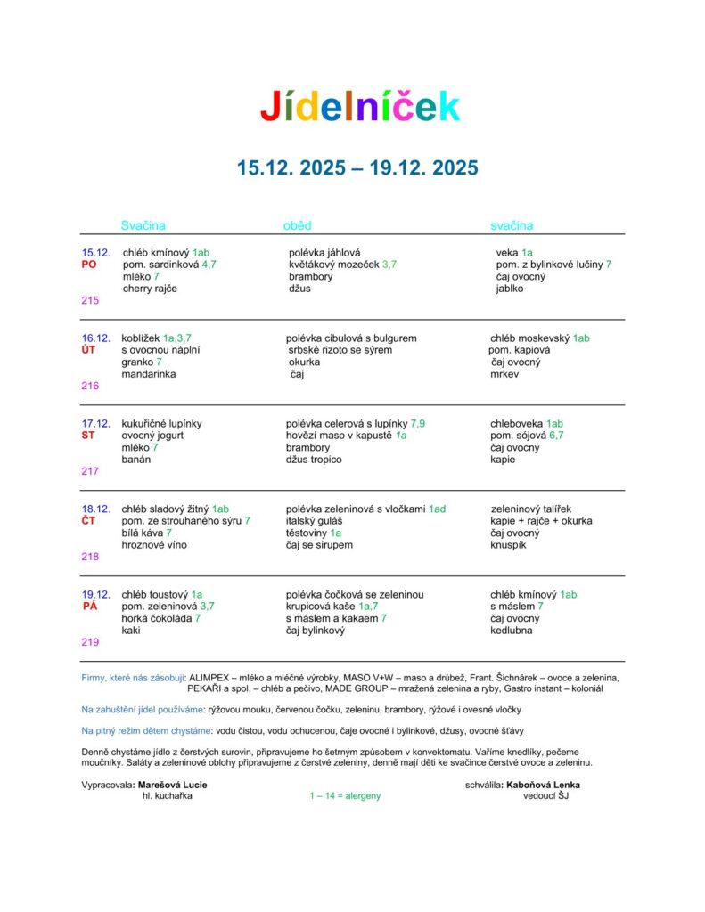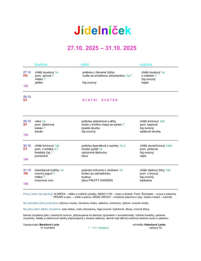 Vnitrní řád školní jídelny platný od 13. 10. 2025