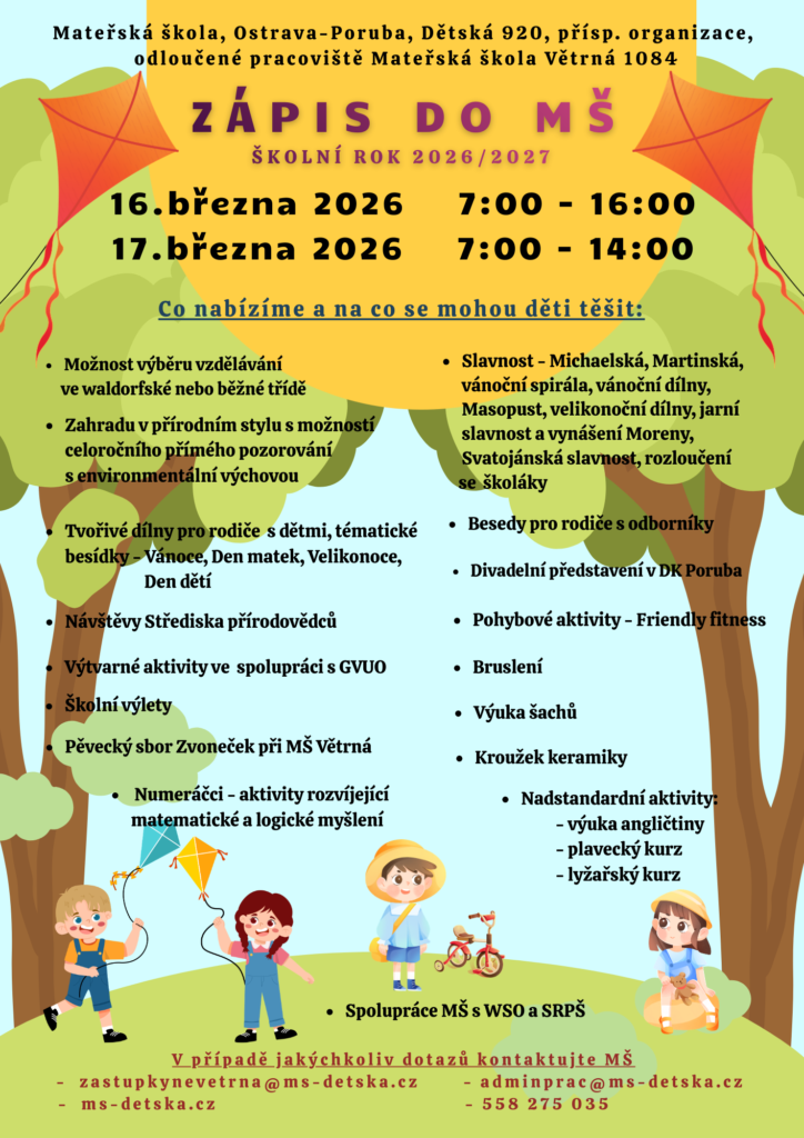 Copyright © 2023 - 2026 MS Větrná, odloučené pracoviště MŠ Dětská. Všechna práva vyhrazena. | Vytvořil
