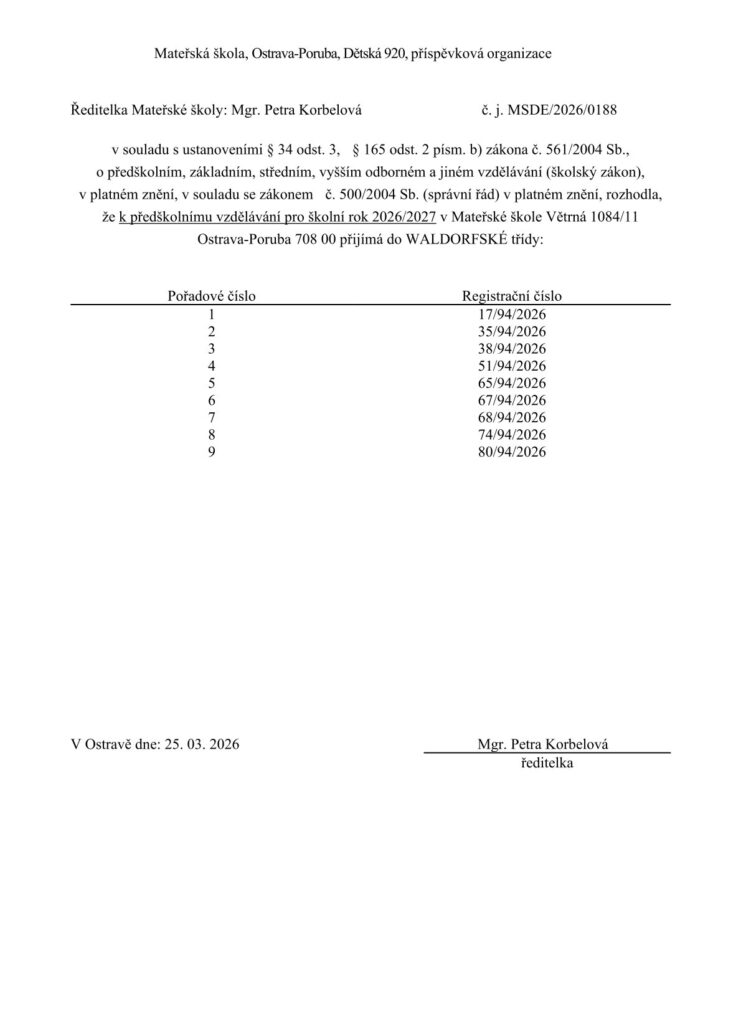 Směrnice zápis do MŠ 2026-2027